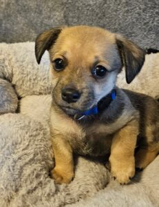 We are guessing at the breed, but Mom is a Chiweenie.  Dad is a mystery.  They could also be part pug, terrier, ???